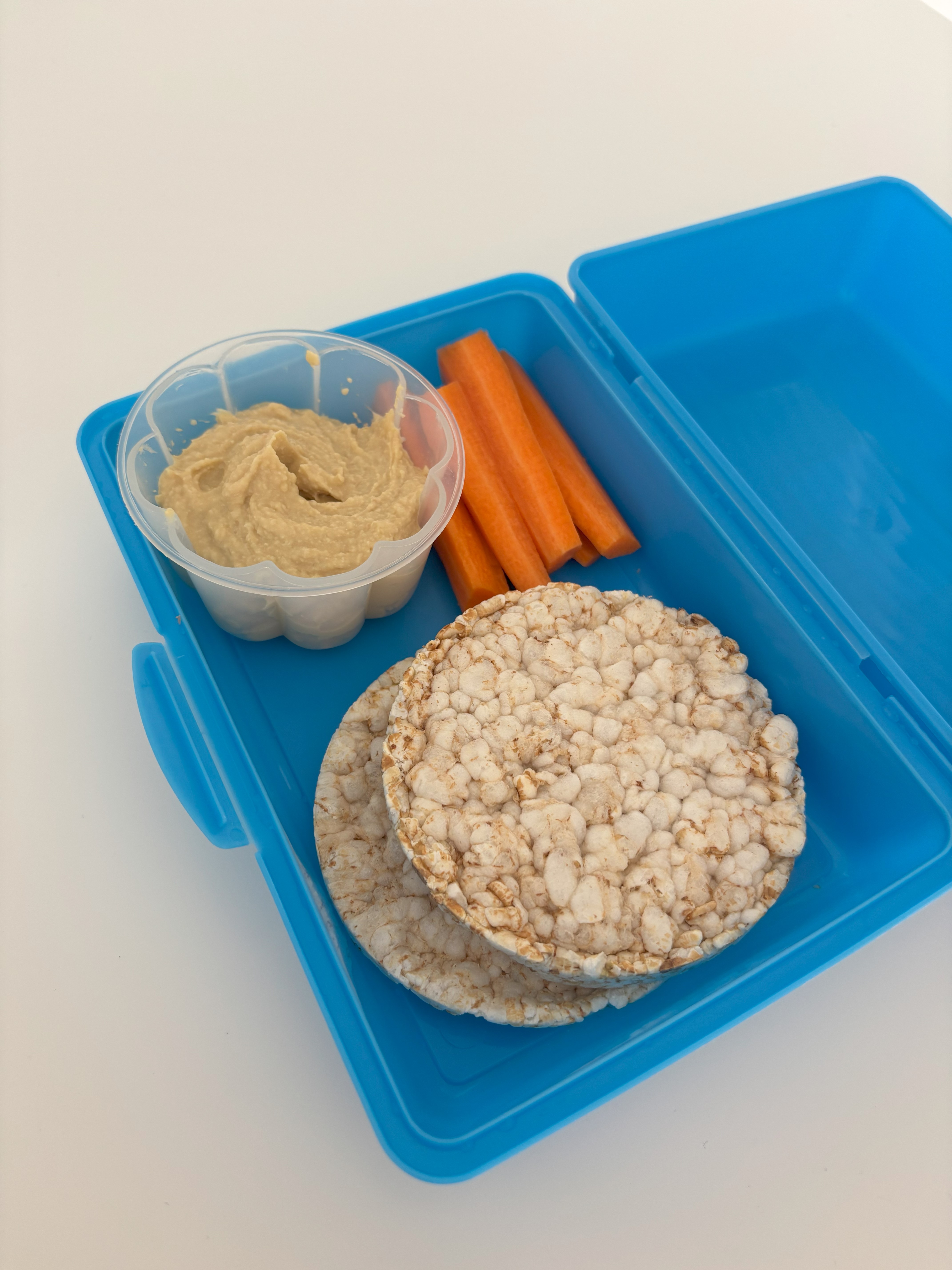 Palitos de zanahoria con hummus + tortitas de arroz.