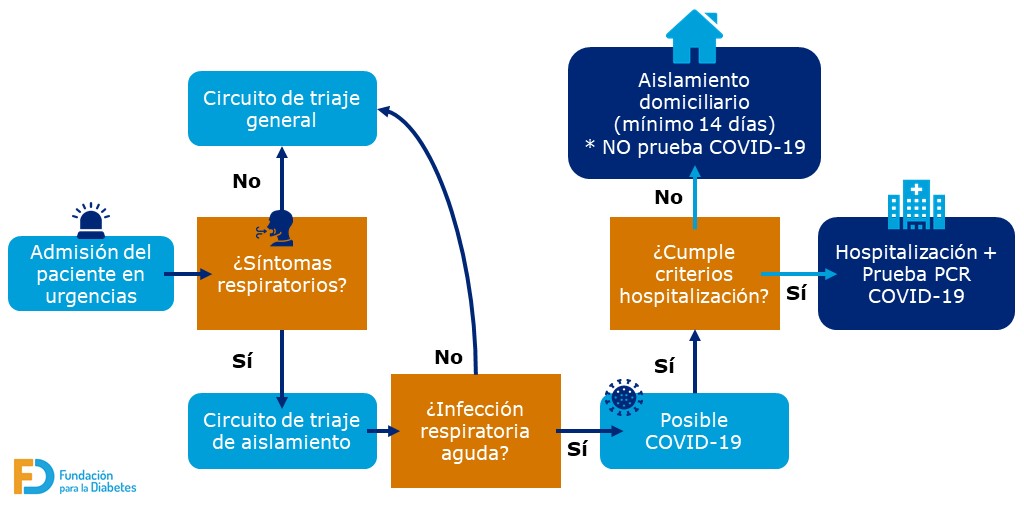 • El diagnóstico comienza con una llamada de la persona con síntomas a los teléfonos habilitados, donde el sanitario evalúa sintomatología y gravedad, determinando si se trata de un posible caso de COVID-19 y su gravedad (ver gráfico explicativo del proceso) e indicando los pasos a seguir.