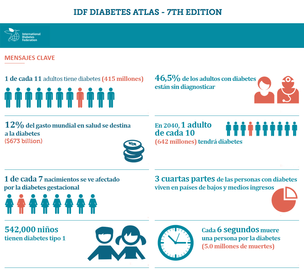 La Federación Internacional de Diabetes dio a conocer el 1 de diciembre, durante la celebración del Congreso Mundial de la Diabetes de Vancouver, los datos de su Atlas de la Diabetes, 7ª edición, actualizados a 2015.