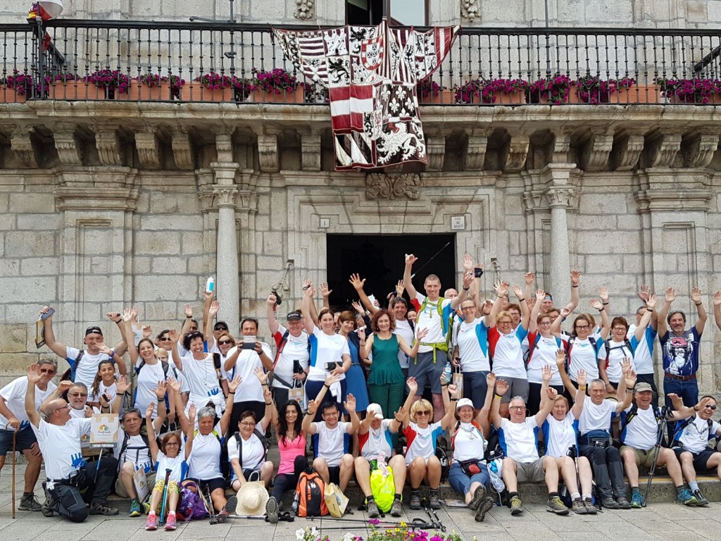 Una vez en Ponferrada, los caminantes fueron recibidos en el ayuntamiento por la alcaldesa, Gloria F. Merayo, y el concejal de bienestar social, Pedro Muñoz.