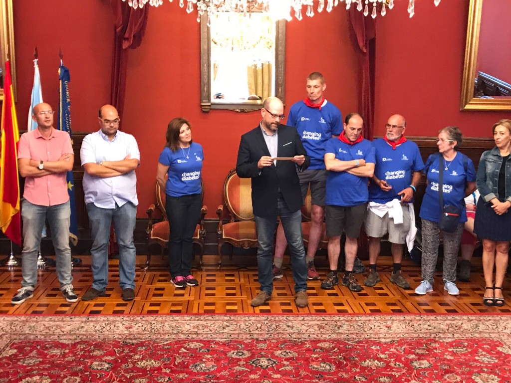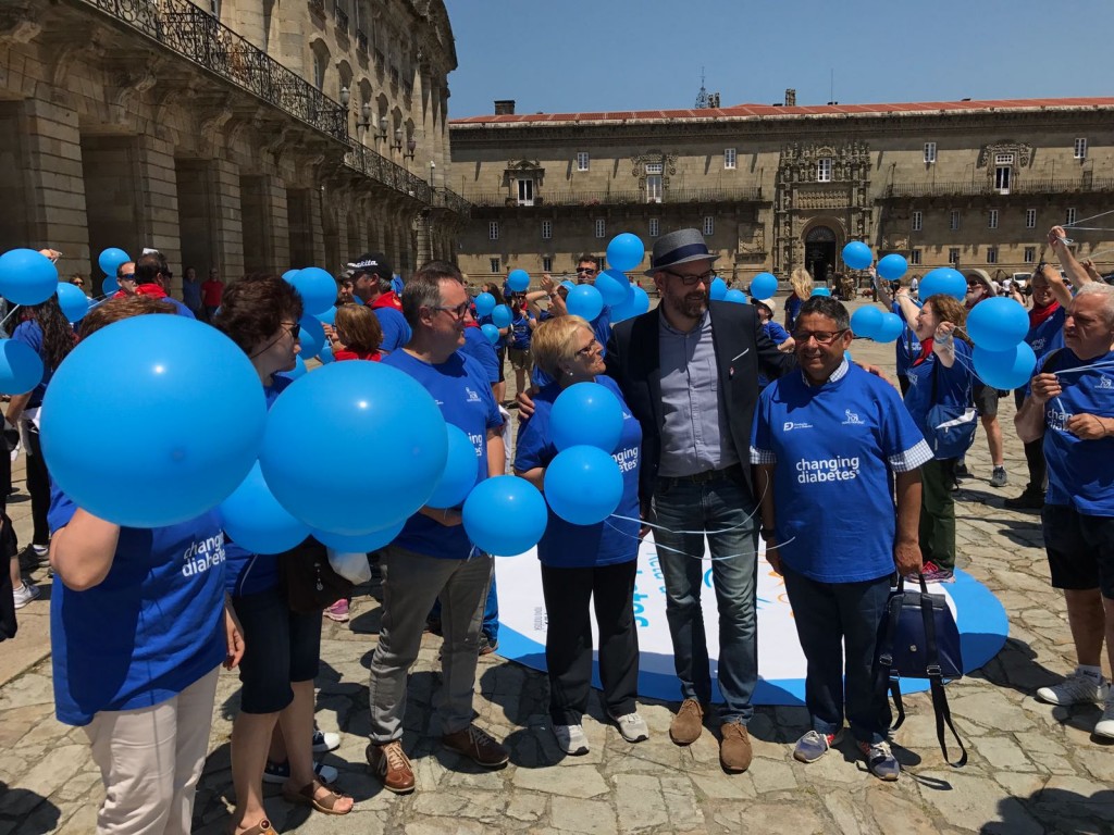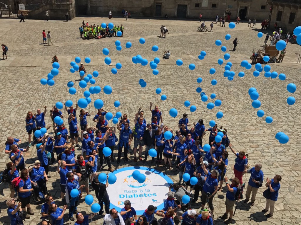 Al finalizar la misa, todos los participantes se dirigieron a la Plaza del Obradoiro, donde serían recibidos por el alcalde, Martiño Noriega. El grupo se congregó alrededor de una pancarta circular en la que se podía leer “Reta a la Diabetes” y participó en una suelta de globos, inundando así la plaza más importante de Santiago de Compostela con los símbolos de la diabetes y convirtiéndose en una verdadera marea azul.