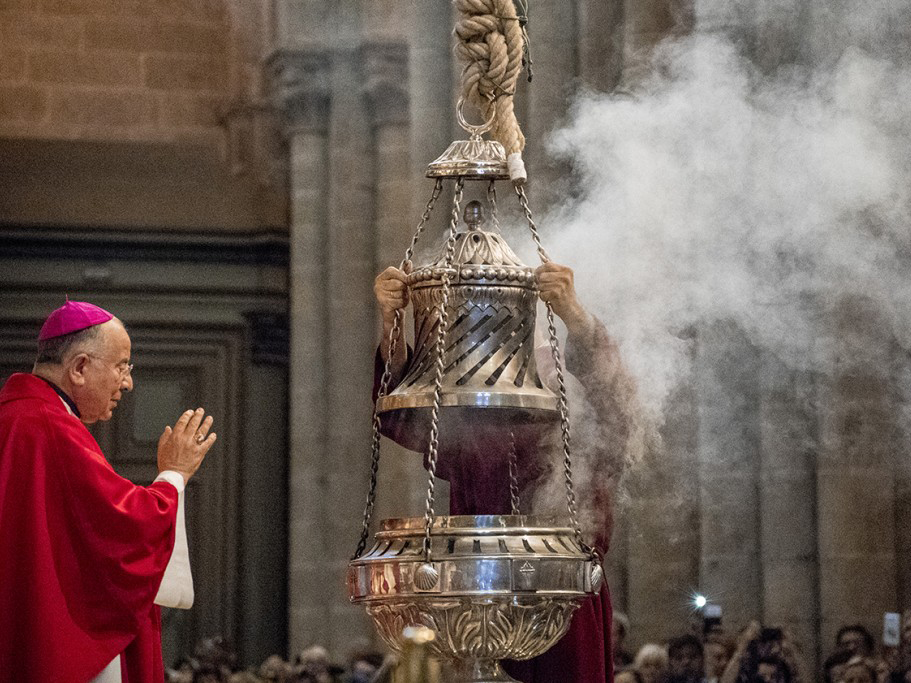 Tras este último esfuerzo y con gran entusiasmo, el grupo al completo se adentró en la catedral y ocupó los asientos que tenía reservados para asistir a La Misa del Peregrino, una misa dedicada a todos los caminantes que llegan a Santiago. Olga Insua, presidenta de la Fundación para la Diabetes, leyó una emotiva invocación al Apóstol Santiago y, para finalizar, se puso en funcionamiento el Botafumeiro, reservado para ocasiones especiales.