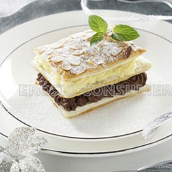 Postre: Milhojas de trufa, crema pastelera y almendra tostada