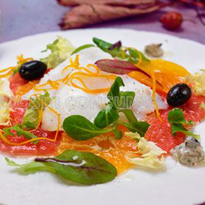 1er. Plato: Láminas de bacalao en ensalada cítrica
