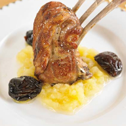 2º Plato: Costillar de cordero asado con manzana reineta y ciruelas pasas con salsa agridulce
