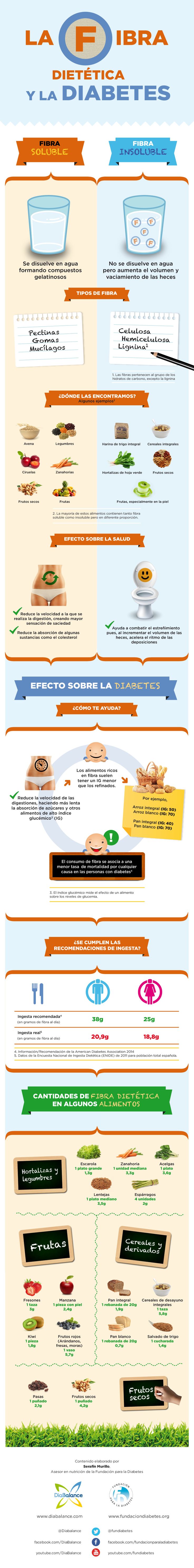 Infografía realizada por la Fundación para la Diabetes y DiaBalance para aprender más sobre la fibra y su efecto sobre la diabetes.