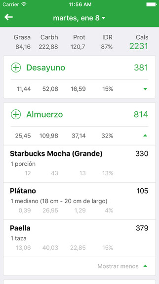 - Información nutricional para toda comida, marcas y restaurantes