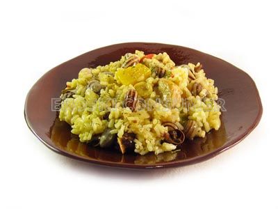 El arroz es uno de los alimentos básicos que forman parte de la dieta mediterránea. Los hidratos de carbono son sus nutrientes más abundantes, mientras que apenas contiwene grasa. Si bien, conviene tener en cuenta que este es un alimento astringente por lo que su consumo no está indicado en personas que presenten problemas de estreñimiento. En este caso, el arroz se acompaña con conejo y caracoles. El conejo aporta proteínas de alto valor biológico, además de ser una carne magra, por tanto con un bajo contenido graso. La presencia de los caracoles, contribuye a que el plato se enriquezca desde el punto de vista nutricional, ya que son un alimento con un bajo aporte calórico, gracias a su también bajo contenido graso. Sin embargo contienen una cantidad similar de proteínas a la que puede presentar cualquier carne, aunque el contenido en colesterol de la carne de los caracoles es bastante más elevado. Son ricos en diferentes minerales además de presentar cantidades apreciables de distintas vitaminas, algunas de ellas con acción antioxidante. Al acompañar el plato de tomate y cebolla, el contenido en dichas sustancias con acción antioxidante se ve aumentado, así como la presencia de vitaminas y minerales.