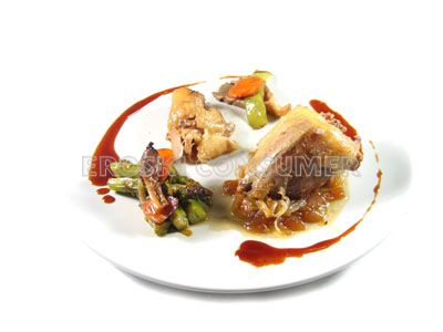 Cocemos lentamente todos los ingredientes, hasta que consigamos que las codornices estén tiernas y la cebolla esté cocinada.Servimos acompañado de unas verduras salteadas.