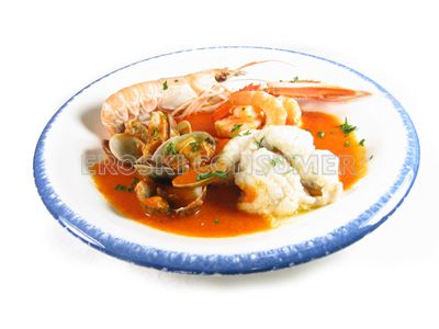 Cualquier ocasión es buena para incluir en la dieta un plato a base de pescado, un alimento de cualidades nutricionales muy interesantes para la salud que no debe faltar en la dieta de las personas de todas las edades. Los pescados se pueden clasificar en blancos o azules según su contenido en grasa, superior en el caso de los pescados azules, y que al ser en su mayor parte de tipo omega 3 ejerce una acción protectora frente a las enfermedades cardiovasculares, ya que disminuye el colesterol de la sangre. En este plato abunda el componente proteico, a expensas del pescado y del marisco, mientras que el contenido de hidratos de carbono es muy bajo. Por su contenido en purinas, el marisco debe tomarse con moderación en caso de hiperuricemia o gota. El tomate y la cebolla aportan sabor y además enriquecen el plato en sustancias antioxidantes, que contribuyen a disminuir el riesgo de padecer ciertas enfermedades. Las especias empleadas pueden resultar indigestas para las personas que tengan el estómago delicado, por lo que se recomienda prescindir de ellas en estos casos.