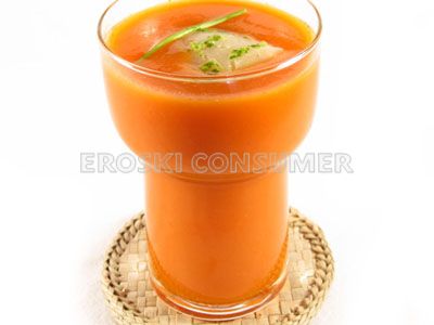 Este batido se puede presentar como un entrante sencillo, rápido y revitalizante por la riqueza en vitaminas (vitamina C, folatos, ) y sales minerales (potasio, magnesio, fósforo) de los ingredientes que componen la receta. Servido bien frío es ideal para compensar los excesos dietéticos tras una comida o una cena copiosas. Además, su contenido en hidratos de carbono es muy bajo, por lo que es ideal como entrante para calmar la sed y el calor en los días calurosos de verano. Además, este refrescante y delicioso plato elaborado con hortalizas de verano contribuye a hidratar al organismo, y dada la combinación de ingredientes de bajo valor calórico, resulta adecuado para personas de todas las edades. Al poder refrescante del tomate se une el carácter diurético del pepino, lo que justifica que ambas hortalizas se empleen con frecuencia en dietas para perder peso. Además, resulta una alternativa interesante para que quienes tienen dificultades de masticación se beneficien de las propiedades nutritivas de estas hortalizas.
