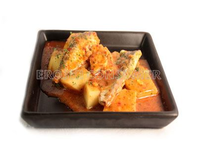 Freímos el pimiento seco rojo con el ajo, la cebolla cortada de forma gruesa y los cominos. A continuación, se bate en la batidora y se reserva.