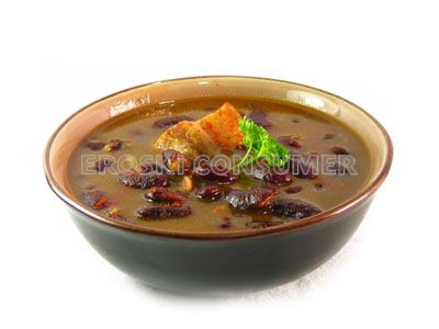 Las alubias son legumbres y como tal, destacan por sus interesantes cualidades nutritivas. Esta receta, además de económica, es muy nutritiva, debido a su aporte de proteínas; vegetales y animales, si bien su contenido graso es importante, lo que la convierte en un plato muy energético. Las alubias son ricas en hidratos de carbono complejos, con una absorción muy lenta, y proteínas vegetales, vitaminas del grupo B, minerales y fibra, que mejora el tránsito intestinal. Hay personas a quienes un plato de legumbre les resulta flatulento y de difícil digestión, en cuyo caso se aconseja eliminar las costillas (lo que reduce el contenido graso y aporte calórico del plato), suprimir el pimentón y las guindillas, añadir durante el cocinado hierbas digestivas como hinojo, comino o tomar una infusión digestiva al final de la comida. Además, es un plato rico en fibra, por lo que es idóneo en caso de estreñimiento. Precedido de un primero de verdura o ensalada y acompañado de un postre lácteo (yogur, arroz con leche...), se obtiene un menú equilibrado, completo y muy saludable, adecuado para todas las edades.