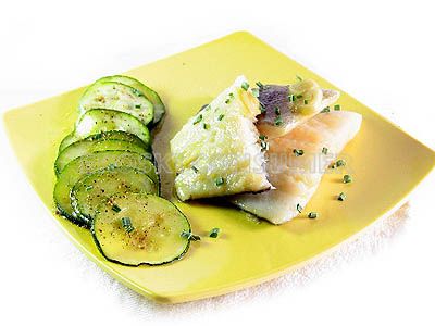 El bacalao es un pescado blanco de un inconfundible sabor. Es por ello que las guarniciones suaves como en este caso, de calabacín, permiten degustar el máximo sabor de este sabroso pescado. En lomos, sin espinas, también es ideal para iniciar a los niños en el consumo de pescado. Se trata de una receta baja en calorías, casi sin hidratos de carbono y de sencilla elaboración, que brinda al organismo los nutrientes propios del pescado blanco; su riqueza en proteínas y su escasez de grasas, además de vitaminas del grupo B y minerales como el fósforo y el potasio. Por sus particularidades nutritivas es muy adecuado en todo tipo de dietas.