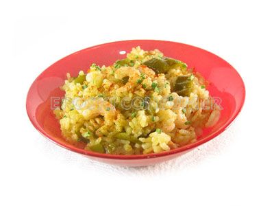 Arroz con pimientos verdes y gambas
