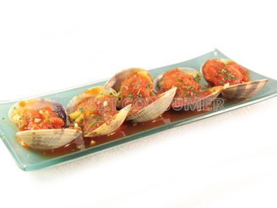 Las almejas son un tipo de marisco rico en proteínas de alto valor biológico, con escaso aporte de grasa y uno de los de menor contenido en colesterol. En este plato, las almejas se preparan con tomate, fuente de diferentes vitaminas, minerales y sustancias con acción antioxidante, grandes aliadas de la salud. También se añade ajo, cebolla y aceite de oliva, todos ellos con compuestos antioxidantes. Se trata de una receta sencilla, fácil de hacer y saludable, en la cual solamente será necesario restringir la cantidad de aceite utilizada para reducir el contenido calórico. El toque de picante de la receta se ha de rebajar en caso de que vaya a ser consumida por niños o por personas con el estómago delicado.